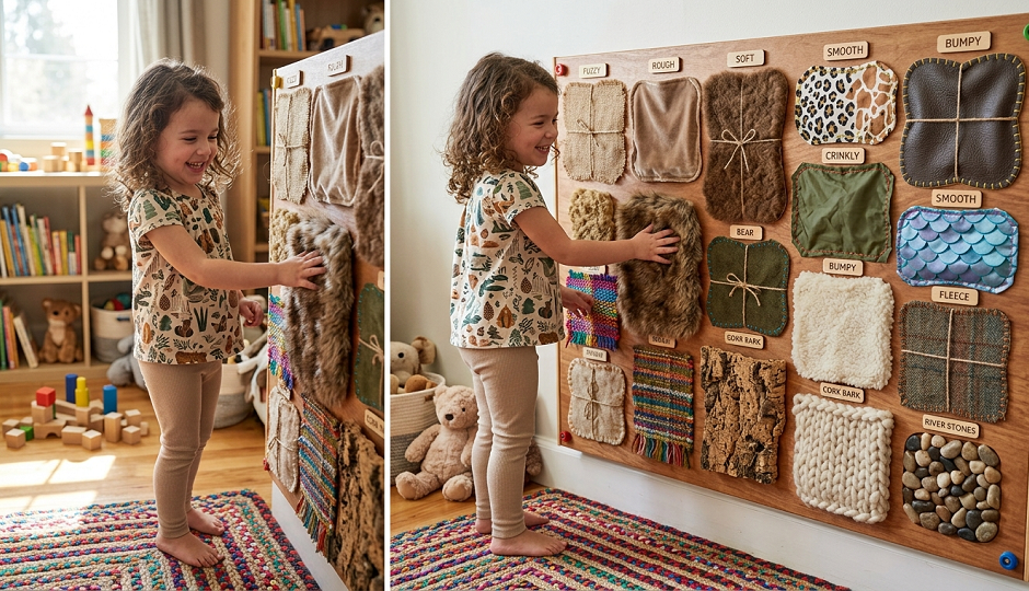 I’ve found that high-pile carpet samples are a goldmine for this. You can usually get them for free or very cheap at flooring stores. They provide a deep, squishy sensation that most kids find incredibly grounding. If you have a child who gets easily overstimulated, I suggest placing the “softer” fabrics at eye level. When Maya was having a rough day, she would lean her forehead against the faux fur square and just breathe. It became a self-regulation tool as much as a plaything.